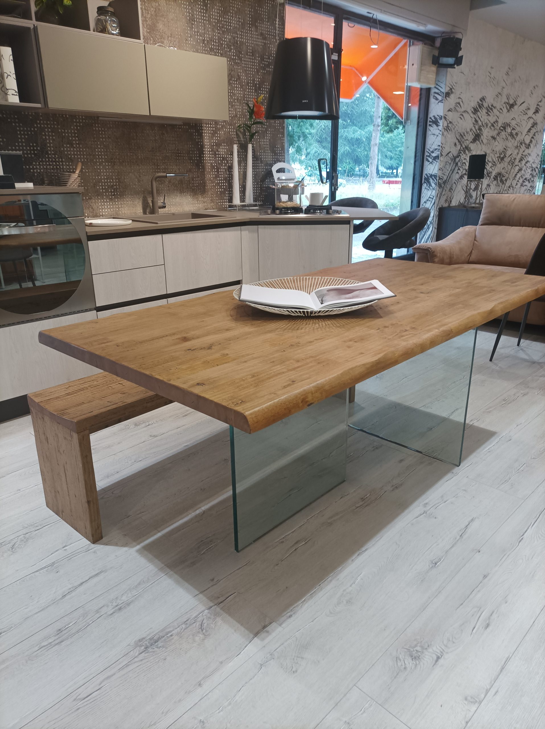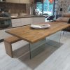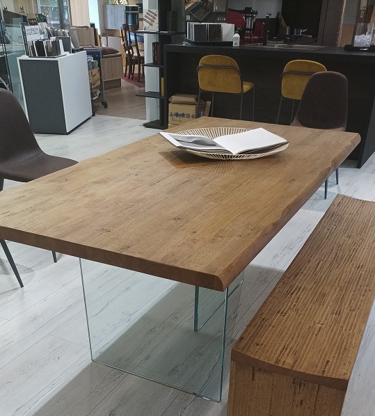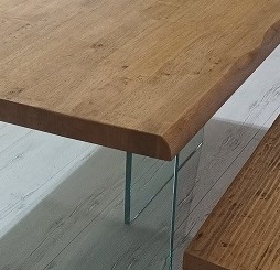 Tavolo Fisso/Allungabile con gambe in vetro e piano in legno massello – Finitura Groove