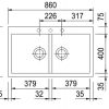 Serie: Elegance Tipo di lavello: Lavello a Due Vasche Dimensioni: 860 x 510 mm Base: 90 cm Foro per l'incasso: 840 x 480 mm Installazione: Standard Reversibile: No